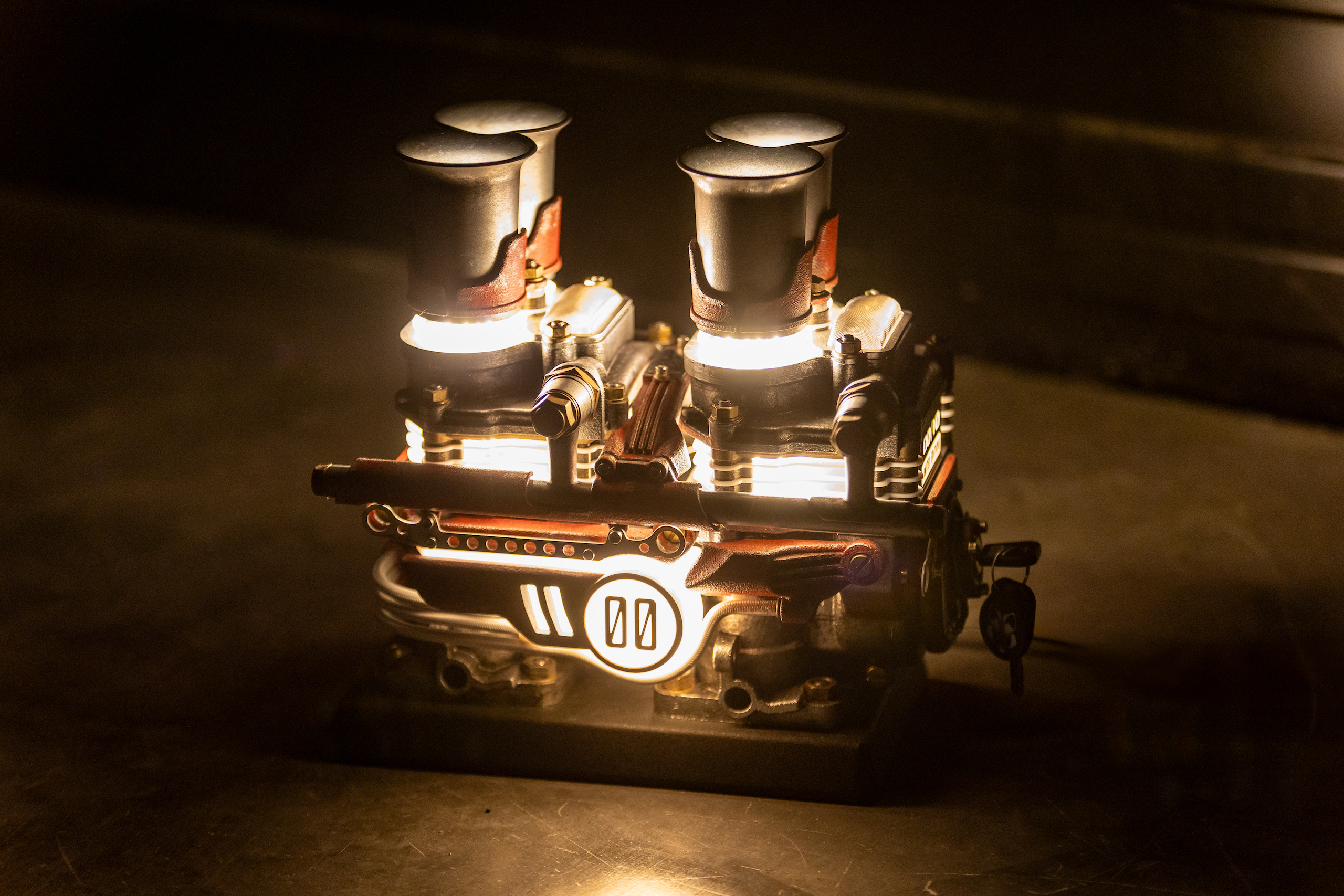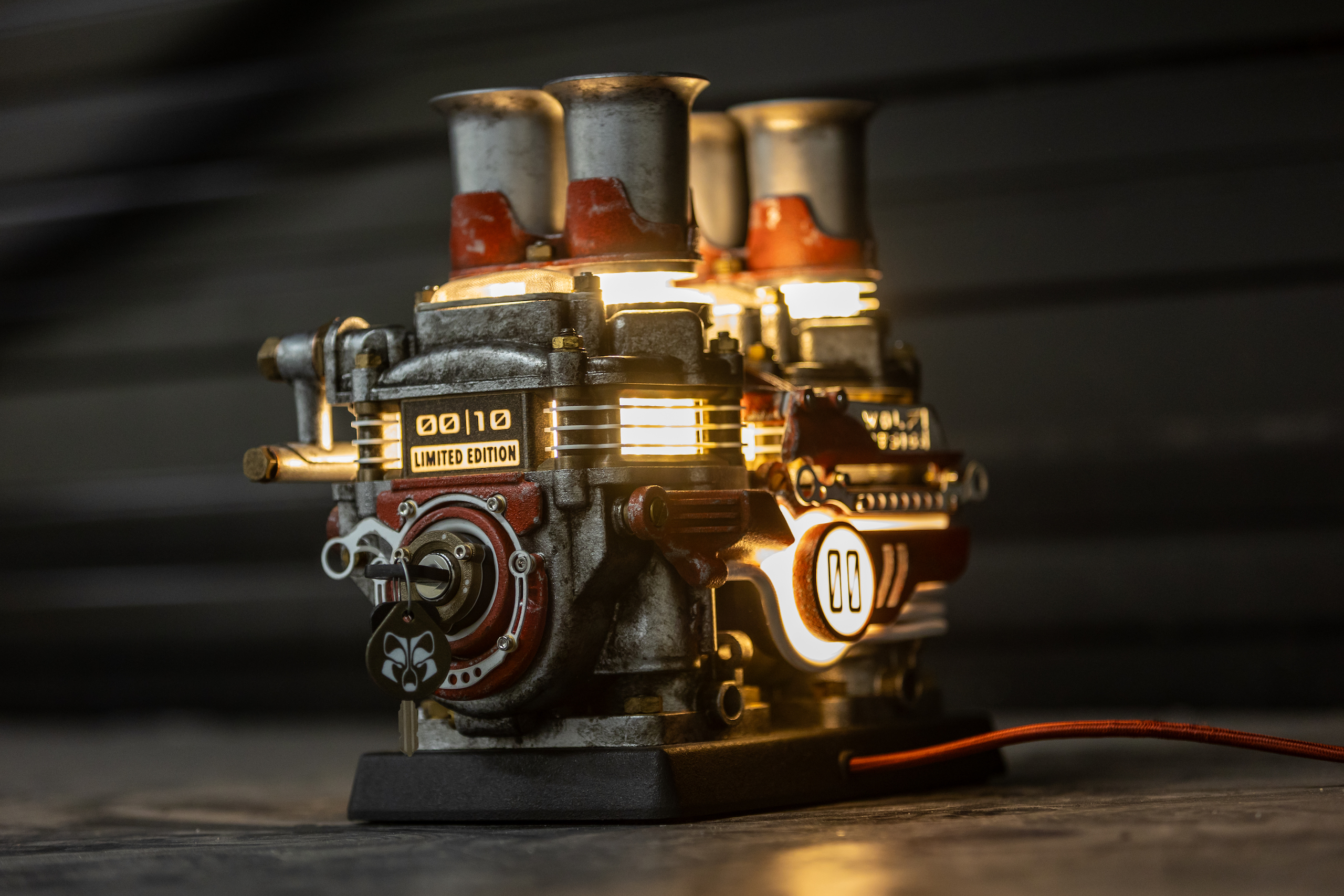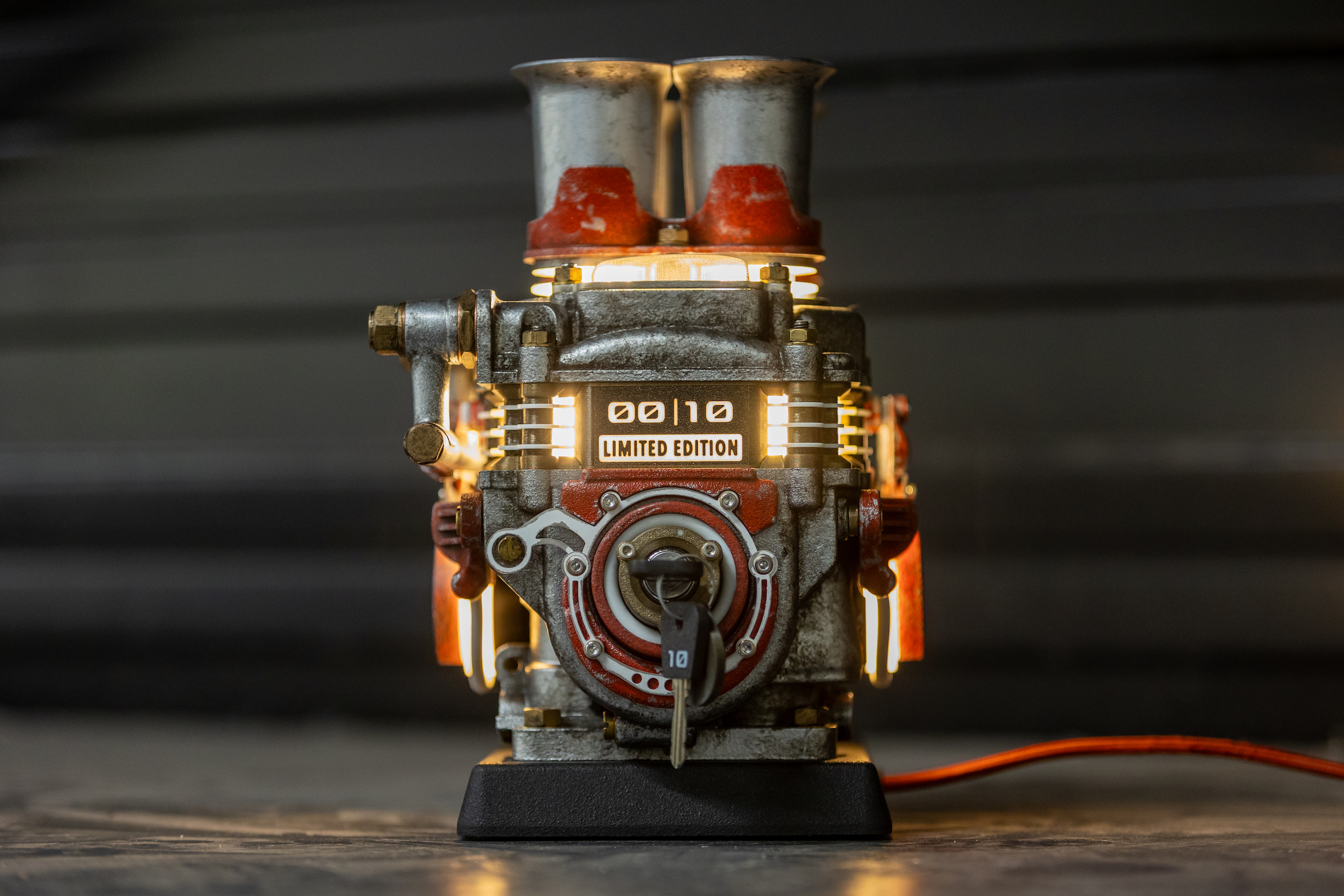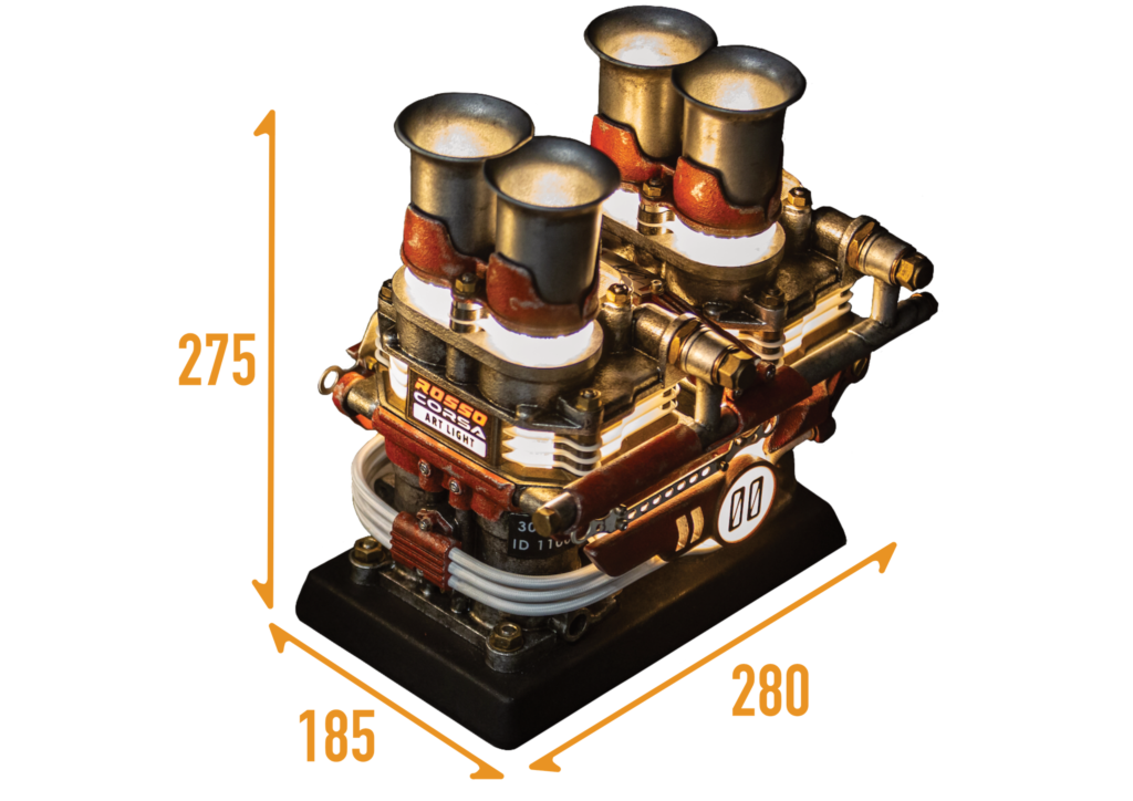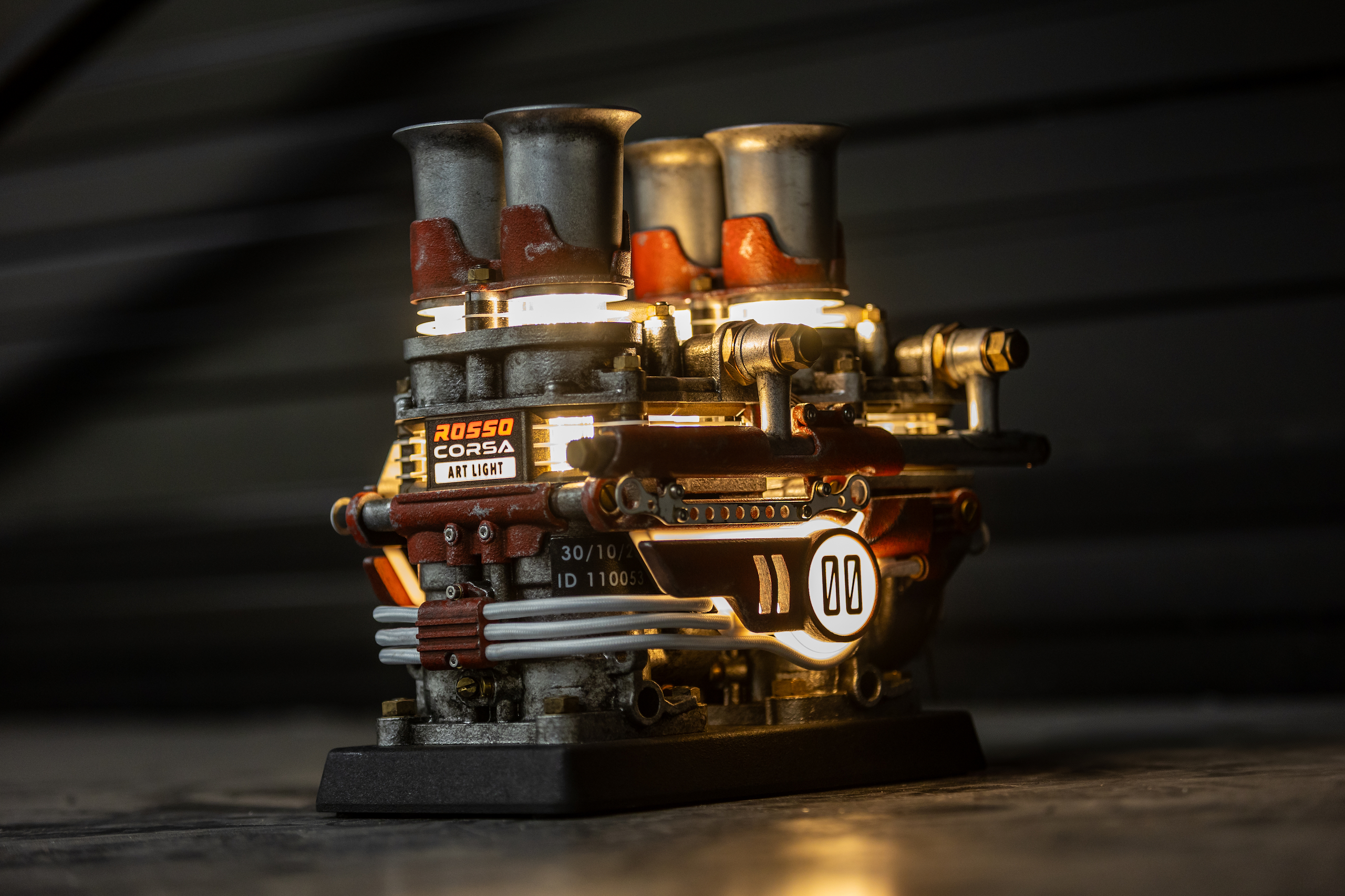 Inspirée du fabuleux V12 Colombo des Ferrari des années 60, cette lampe en impression 3D arbore un style néo-rétro unique, où l’effet usé raconte sa propre histoire.